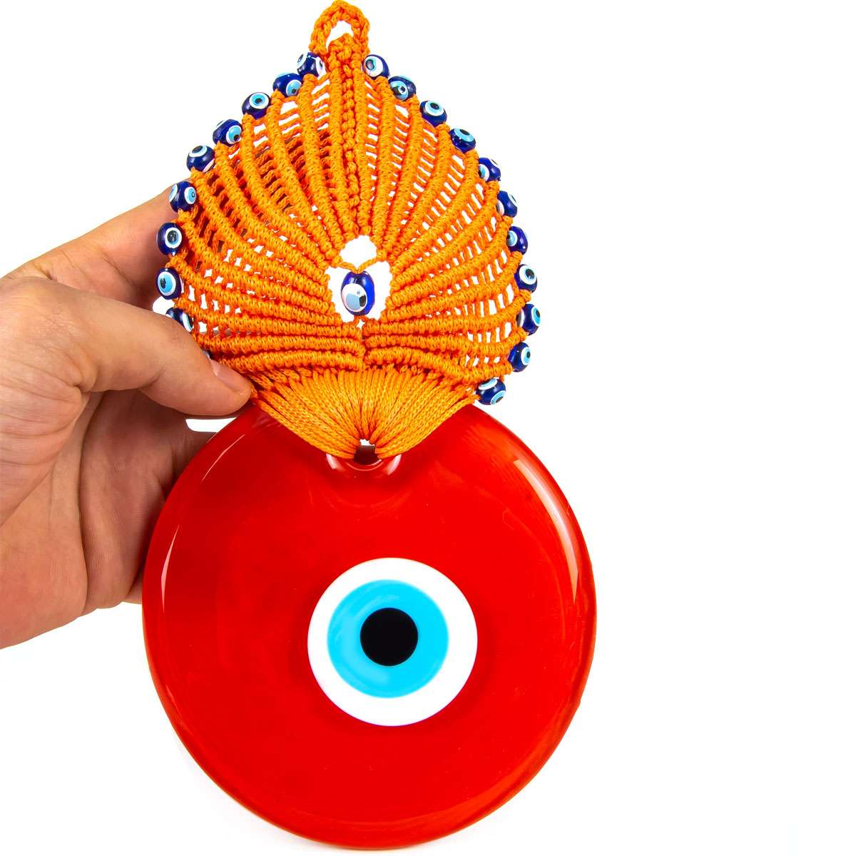 6 No Tavuskuşu Makrome Duvar Süsü Turuncu