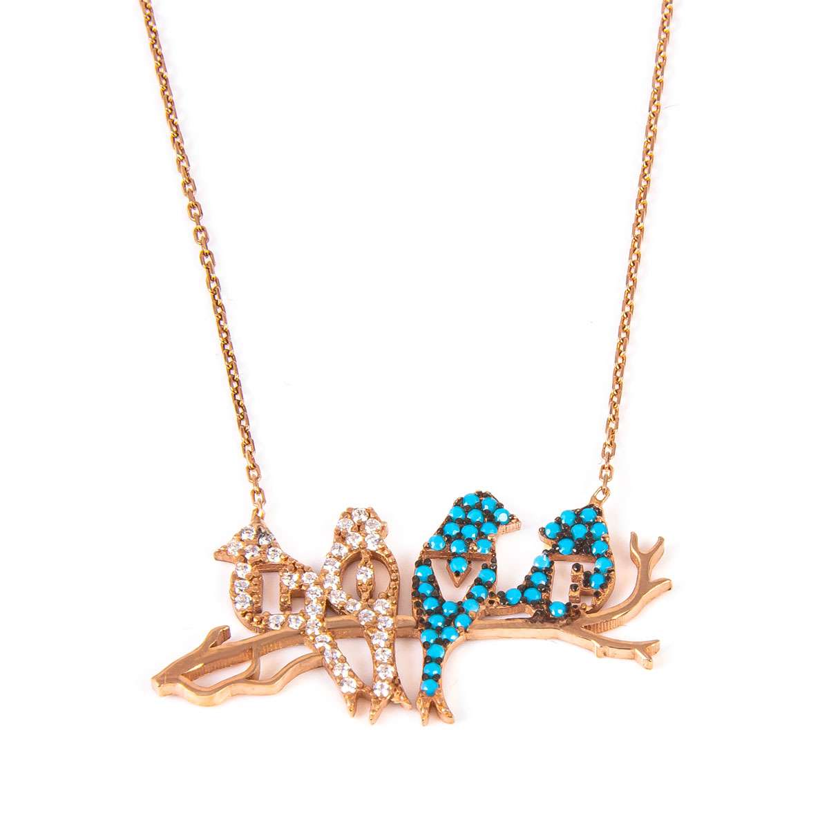 925 Ayar Taşlı Kuşlu Gümüş Kolye 3,5 Gr