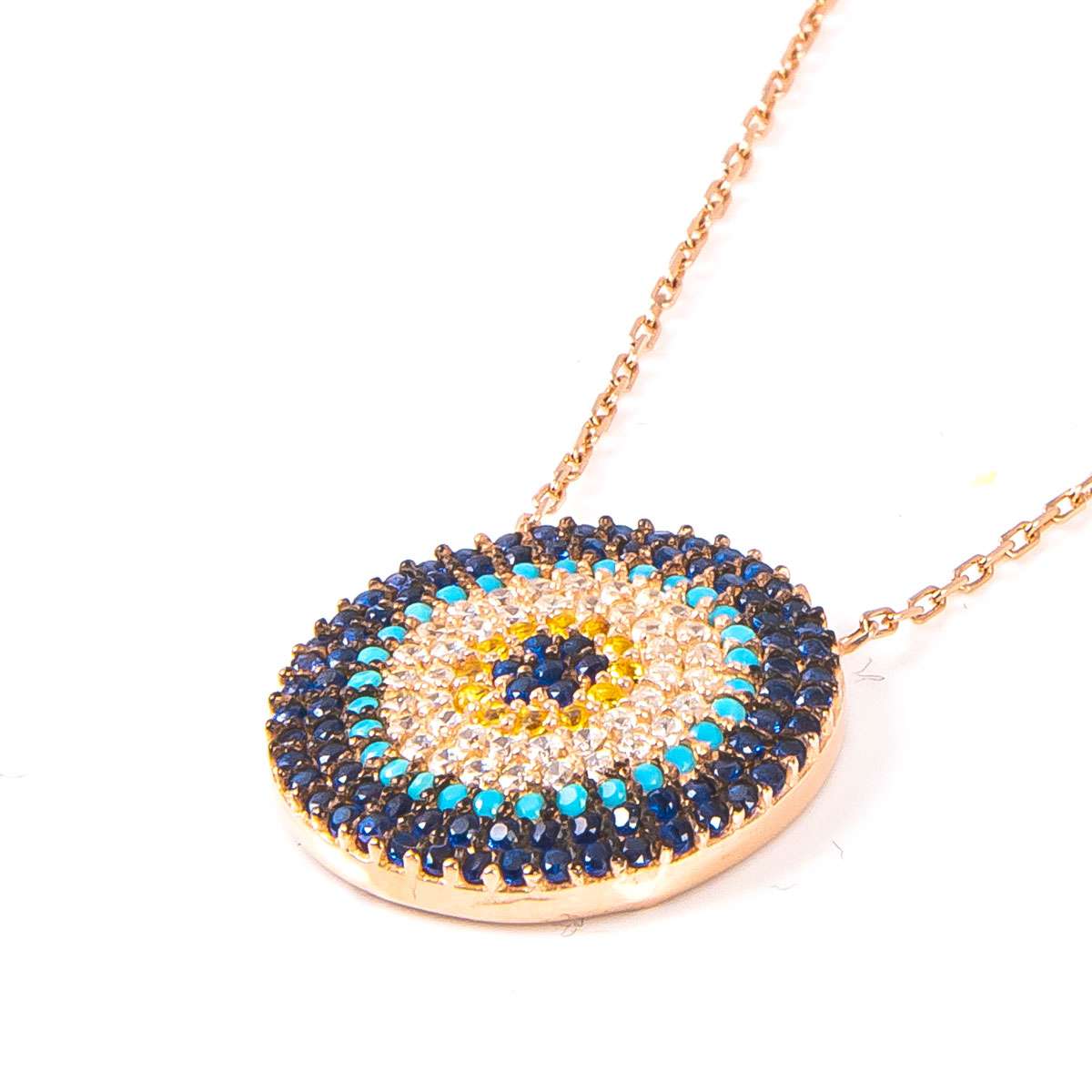 925 Ayar Taşlı Nazarlı Gümüş Kolye 3,6 Gr