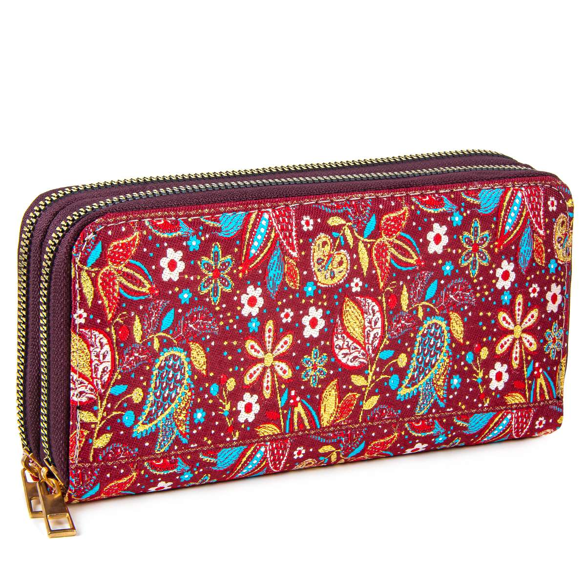 Çift Fermuarlı Dokuma Bayan Cüzdan