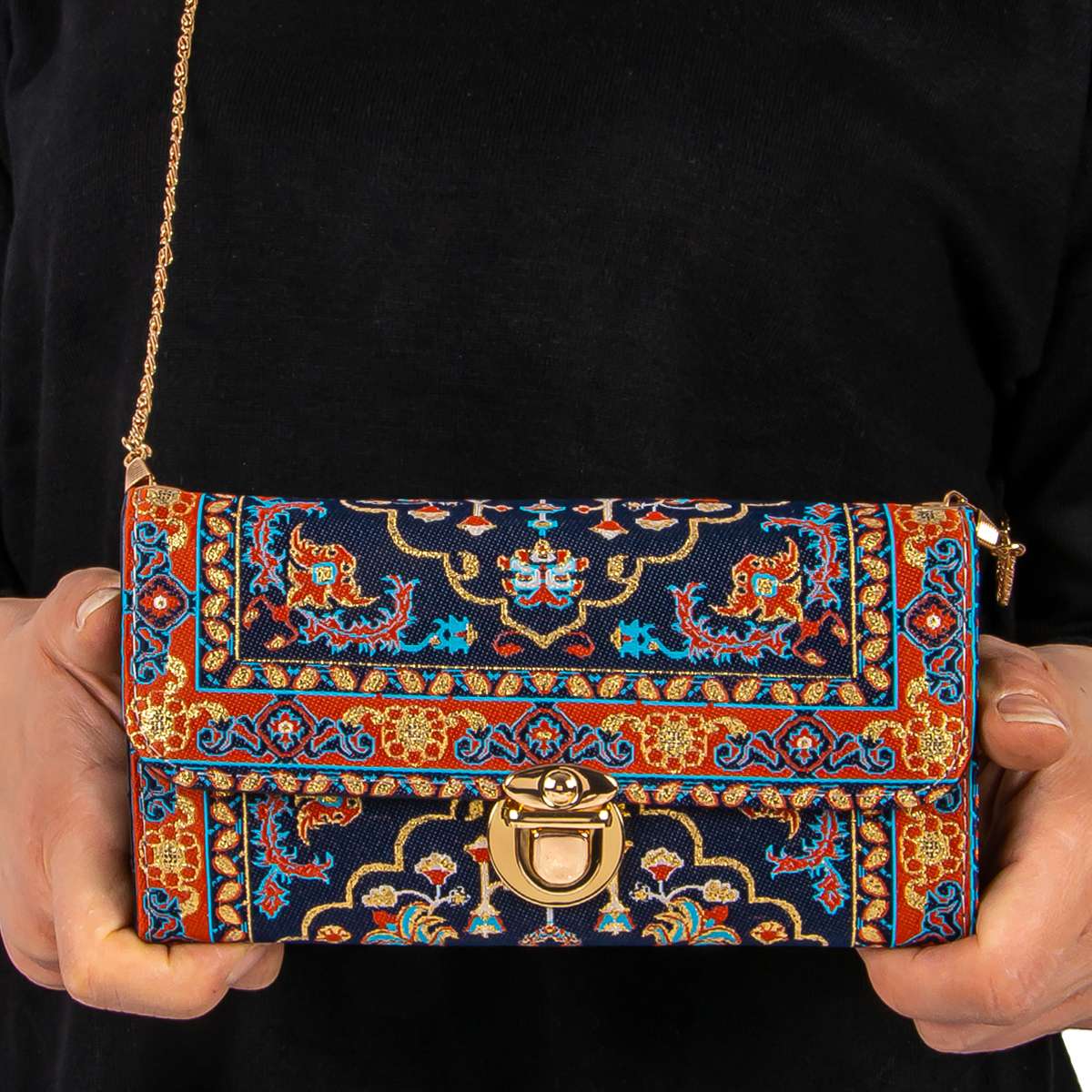 Zincirli Dokuma Bayan Cüzdan Kapaklı Büyük