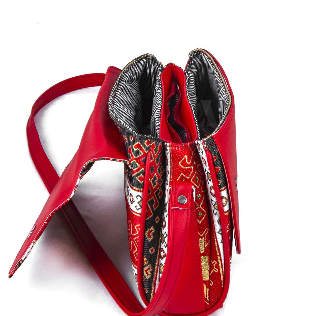 Çift Kapaklı Çanta Kırmızı-Siyah 2250