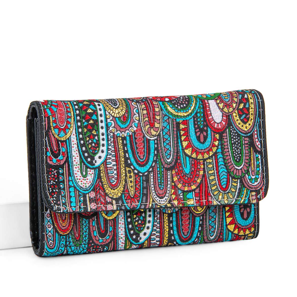 Kilim Desenli Dokuma Bayan Cüzdan Kapaklı Küçük