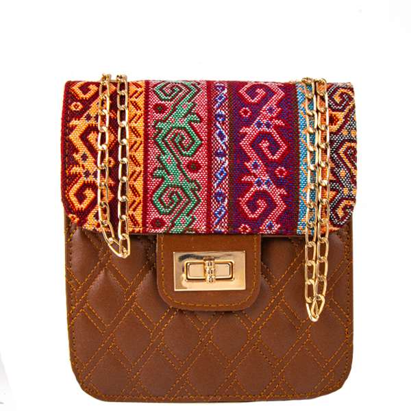 Nakkash Kilim Desen Zincirli Kare Kol Çantası Küçük