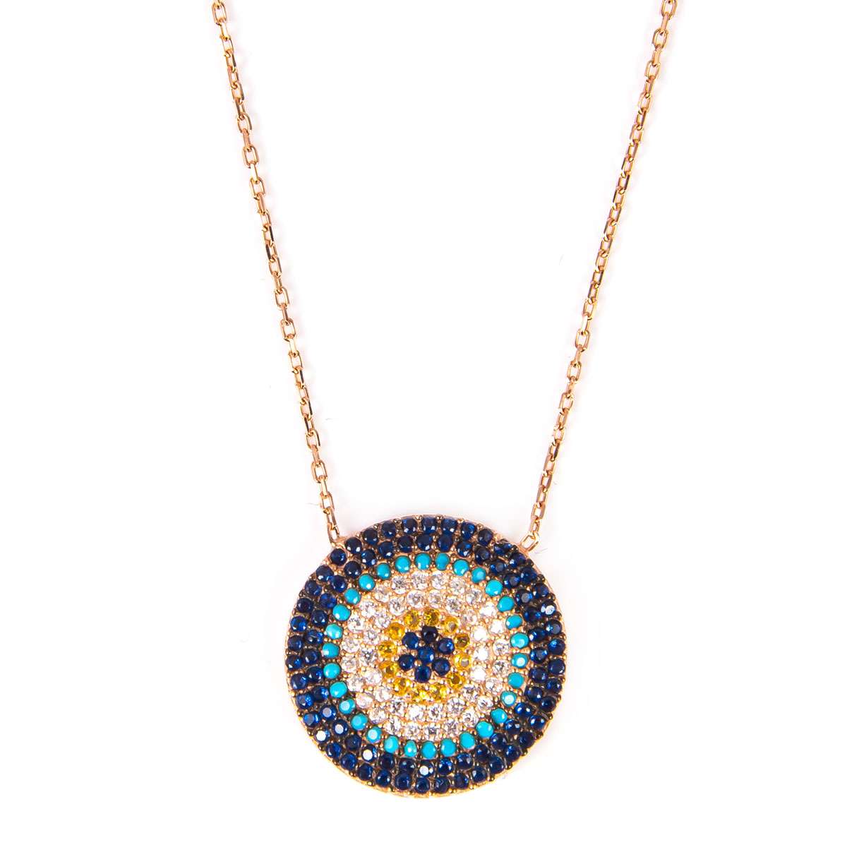925 Ayar Taşlı Nazarlı Gümüş Kolye 3,6 Gr