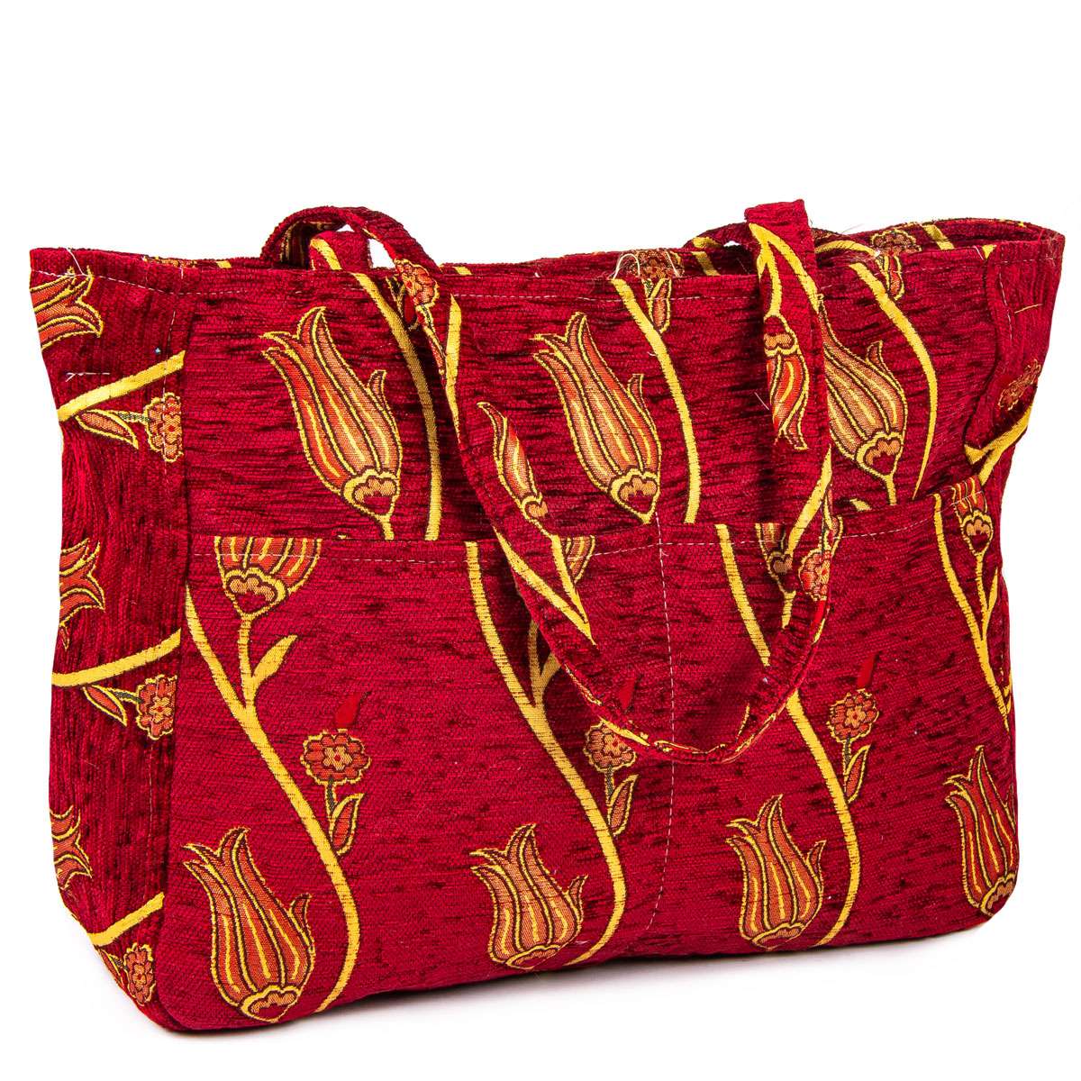 Double Pocketed Tapestry Turkish Beach Bag - Red