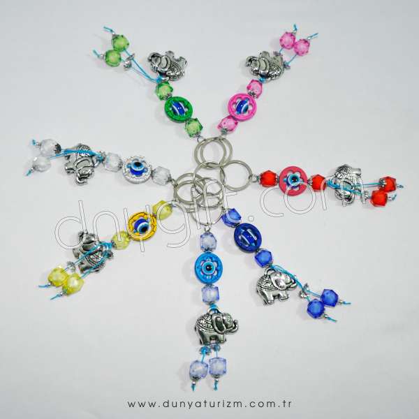 | B314141901 | Turquoise Elephant Figured Evil Eye Beaded Key Chain | |