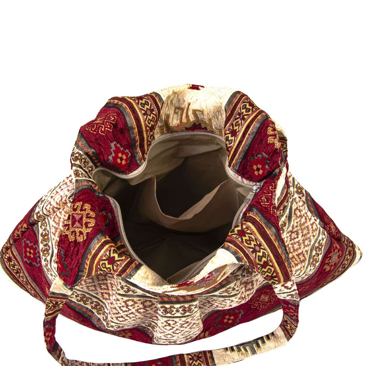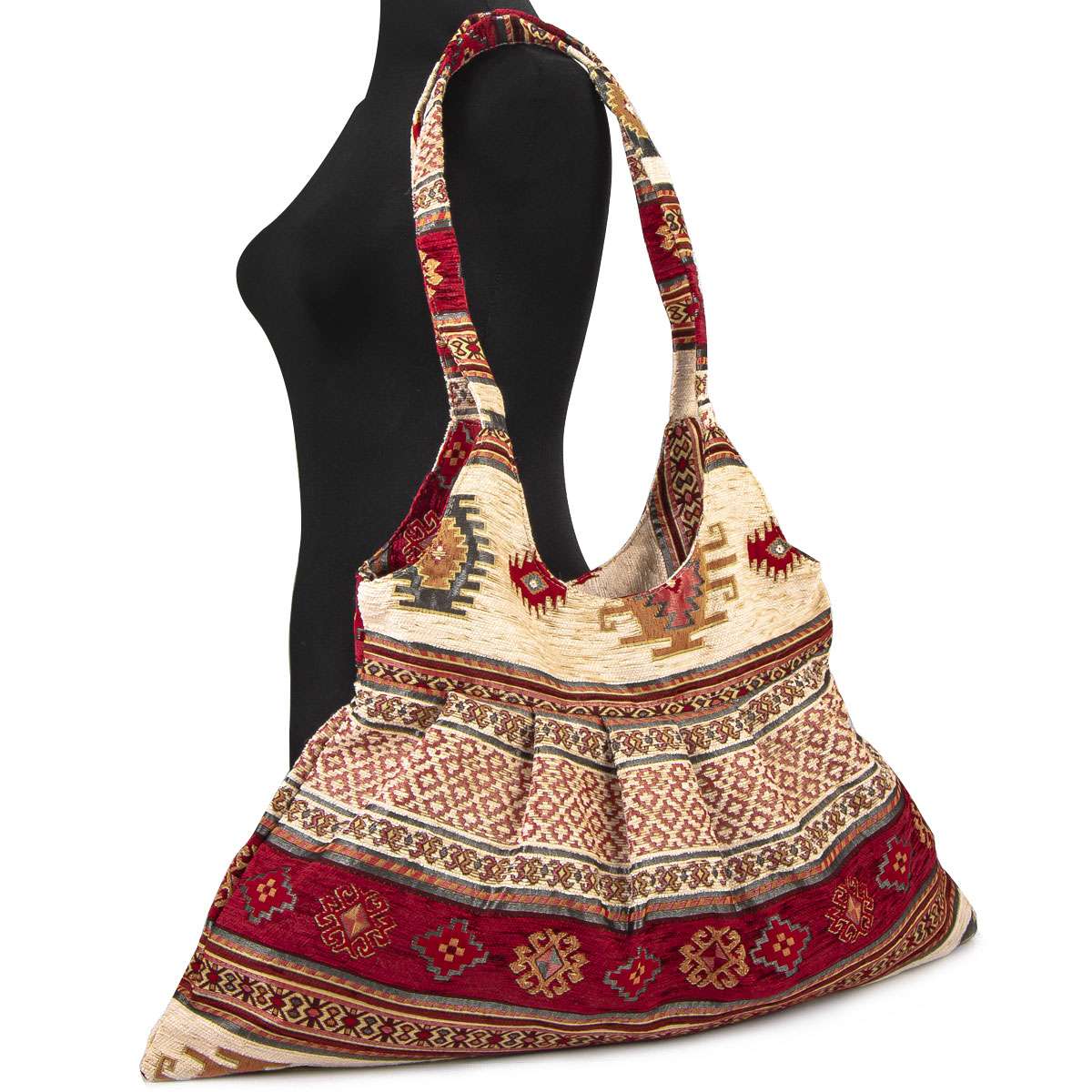 pleated Turkish Patterned Cream-Red Shoulder Bag