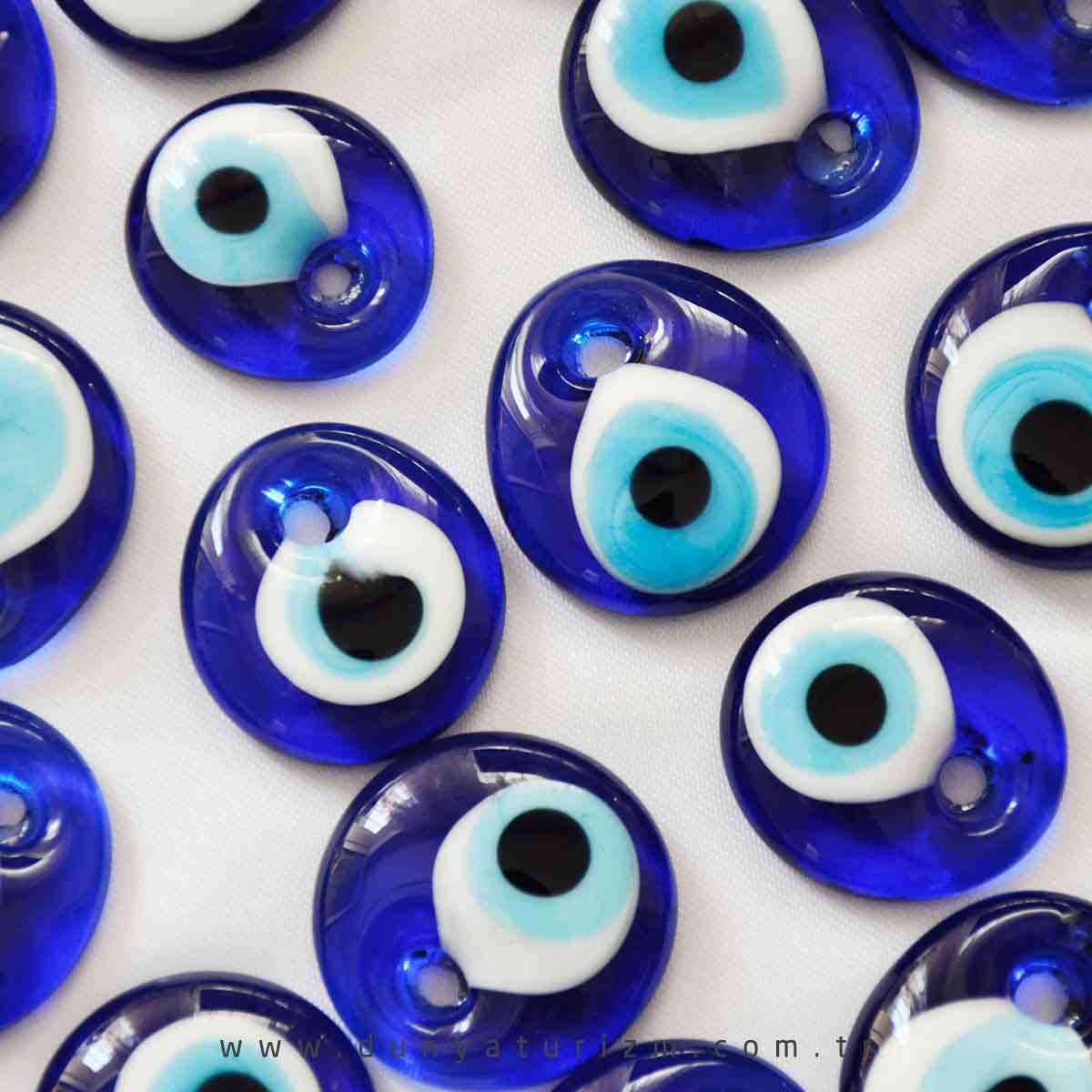 - 1.5 - 2cm boylarındadır. - El yapımı olduğu için standart boyda değildir. - %100 Türk Malıdır. - Camdan imal edilmiştir. - Nazar Boncuğu'nun en çok tercih edilen boyudur.