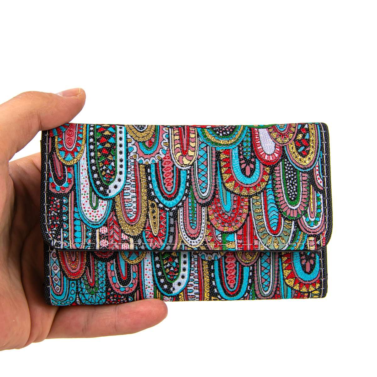 Kilim Desenli Dokuma Bayan Cüzdan Kapaklı Küçük