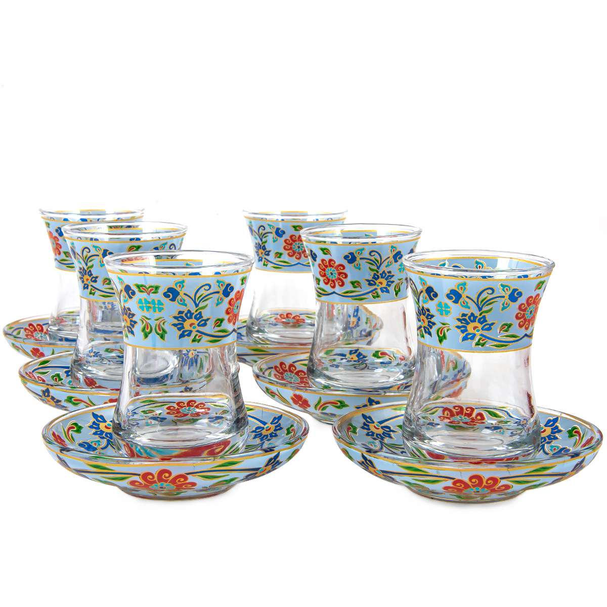 Petek Çini Desenli 6 Lı Çay Bardak Seti