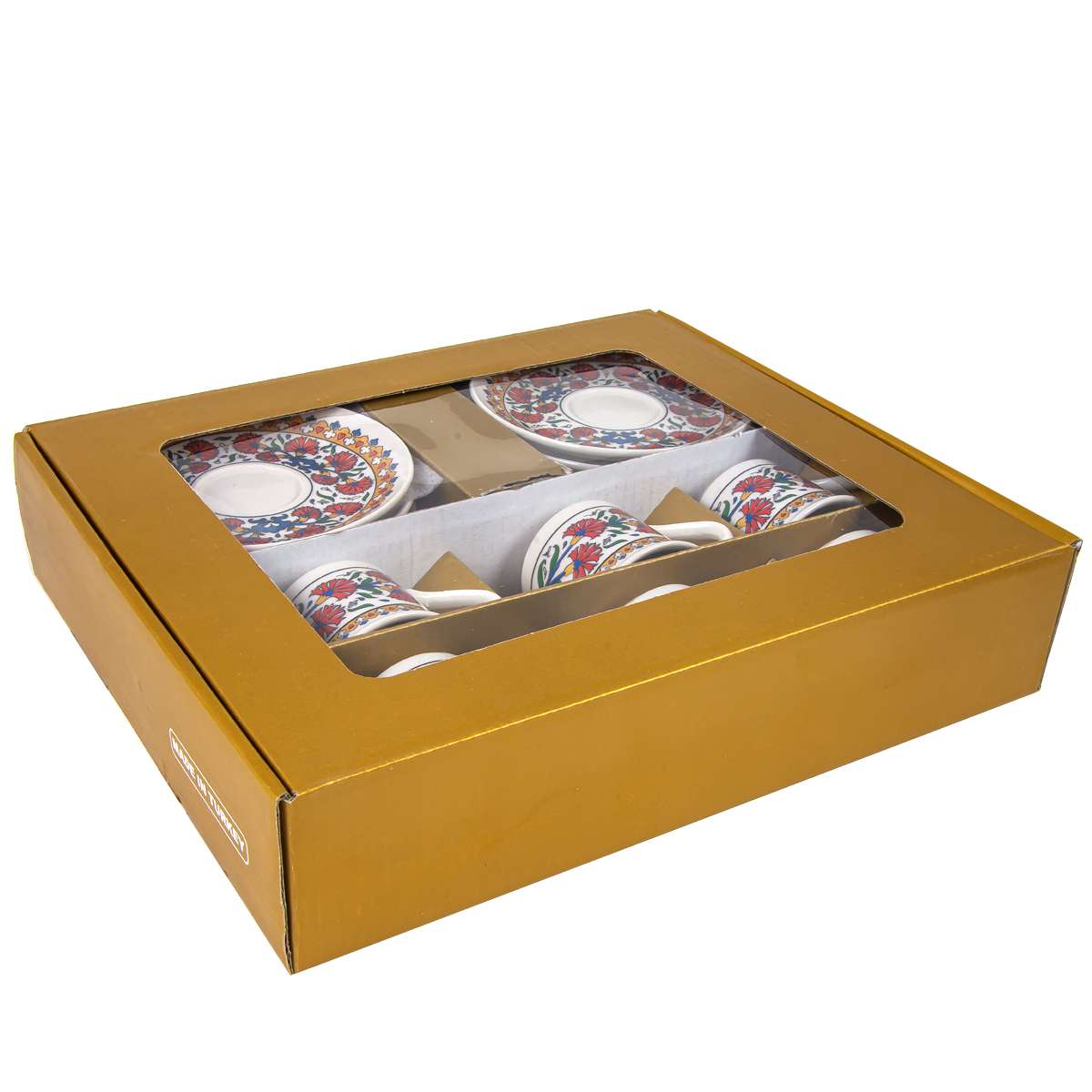 Altı adet fincan ve 6 adet fincan altlığı vardır.