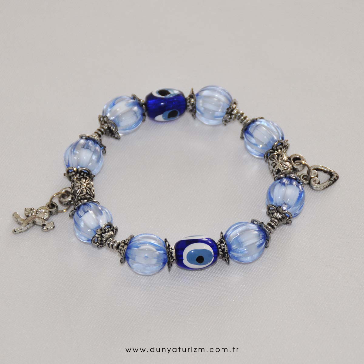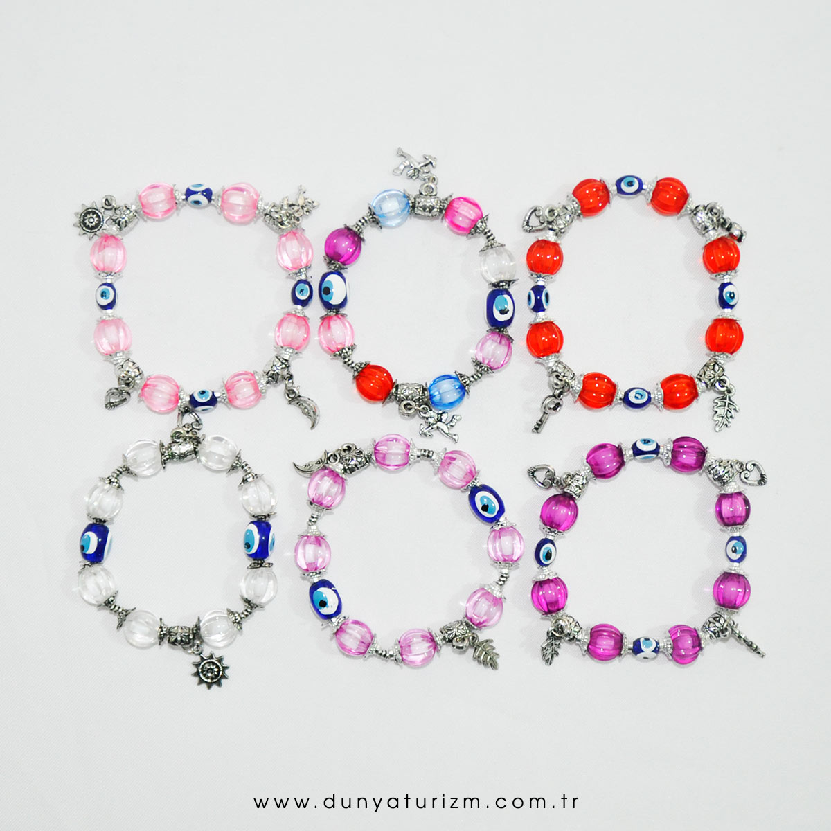 -Şeffaf boncuklar arasına nazar boncuğu ve metal figürler ilave edilerek bilekliğimize canlılık katılmıştır. -Bilekliğimizin karışık renklerde olması her renk kıyafete uyum sağlamaktadır. -Uygun fiyatı ile bu ürünü stoğunuza ekleyerek satışa sunmaya ne dersiniz.