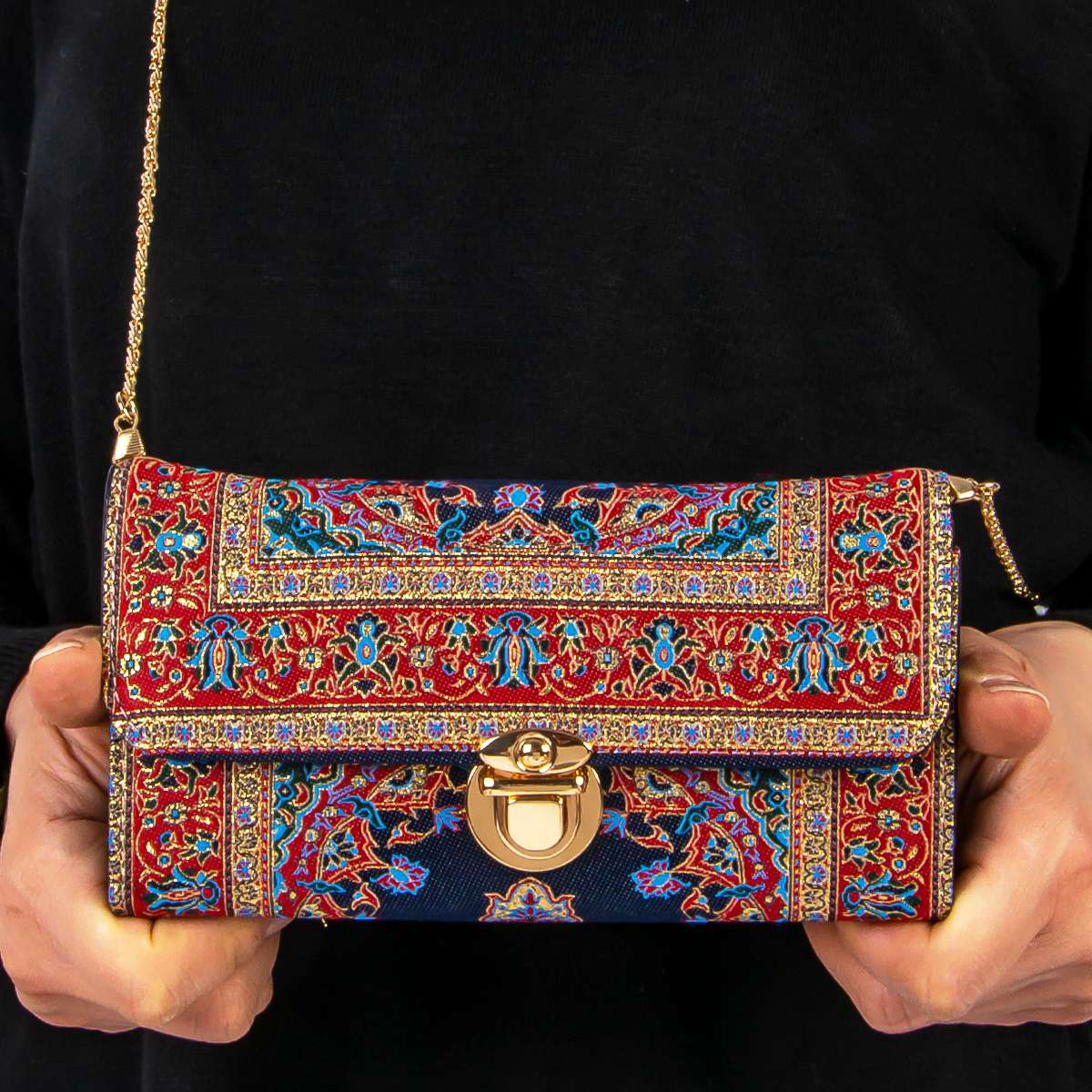 Zincirli Dokuma Bayan Cüzdan Kapaklı Büyük
