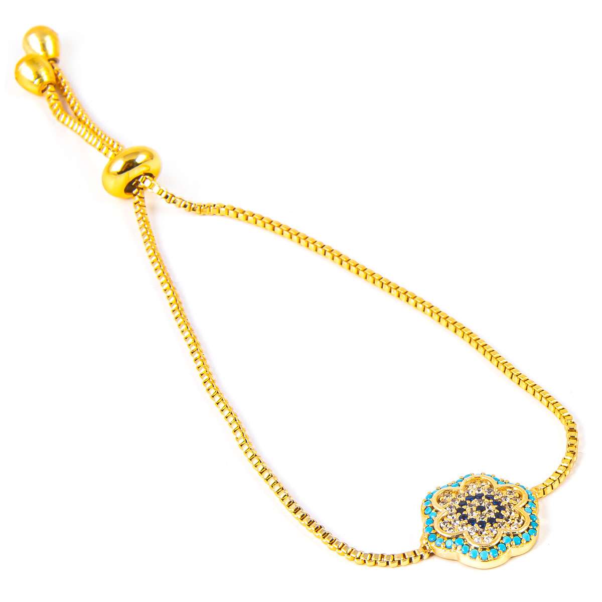 Zirkon Kaplama Çiçekli Altın Bileklik
