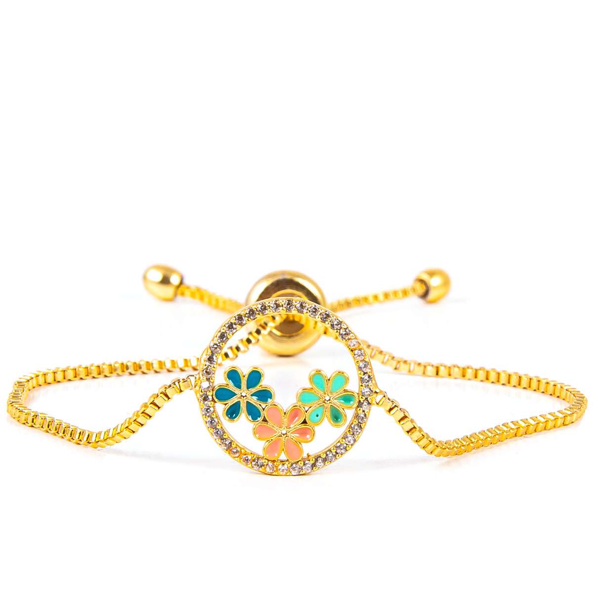 Zirkon Kaplama Çiçekli Bileklik Altın Rengi